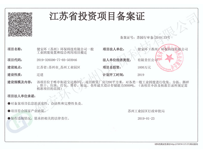 投資項目備案證 新
